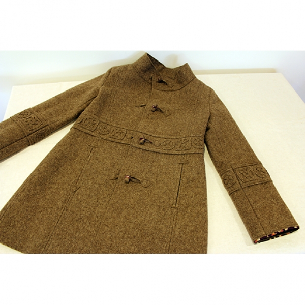 Casaco de Burel Mesclado com barra aplicada de recortes com remate de seda